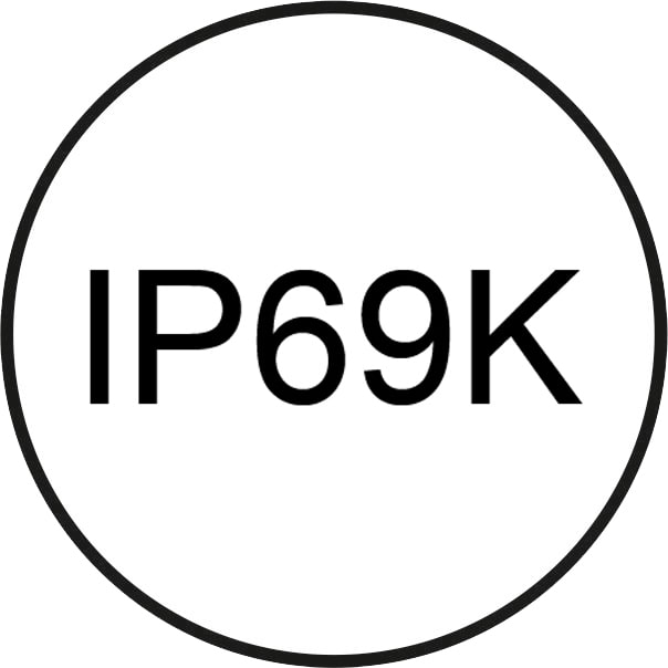 IP69k es una clasificación de la norma alemana DIN 40050-9 que amplía la norma IEC 60529 y que proporciona el máximo grado de protección contra salpicaduras a corta distancia de alta presión (100 bar) y alta temperatura (80 °C), aplicadas desde diversos ángulos, así como contra la penetración de polvo. En muchas industrias donde el polvo y la suciedad pueden ser un problema o donde la higiene y la limpieza son esenciales, como en la industria alimentaria y de bebidas, esta certificación es indispensable para los equipos que deben desinfectarse, soportando rigurosos procedimientos de lavado a alta presión y alta temperatura.